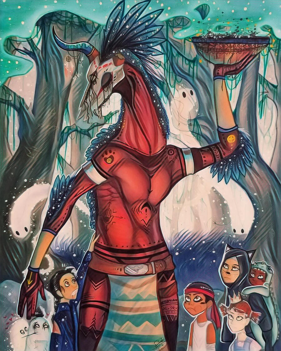 Or any of the beings I draw for that matter, every single one I've ever drawn was seen in dreams and Nightmares and I feel obligated as an artist to share what I'm shown no matter the way people see my work.It's an honor to participate alongside so many incredible indigenous artists over the years who have supported my work and what I do, And if I've learned anything over my walk on this earth it's that our indifferences and similarities are what create us and destroy us.