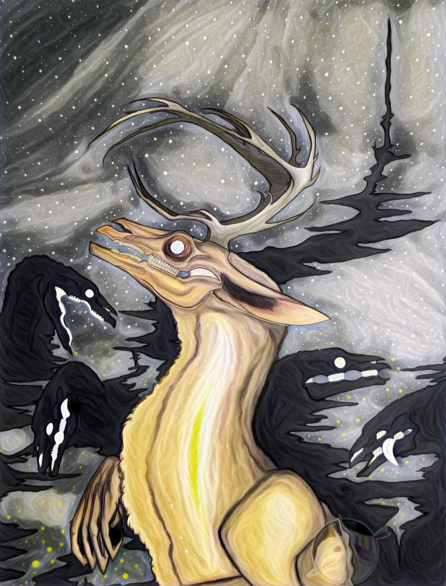 Many of us carry the burden of our ancestors, Our Heritage, Our experiences and the hardships that come with it. Closing off those who remind us of what we blocked out long ago, And as philosophical as it sounds; I believe it shows how different and indifferent we are from one another. Living in a result of what the world thinks we should be, What we should look like, what we should fear or idolize.Deer Fire is a form of loss, Self hate, grief, mourning, healing and acceptance.