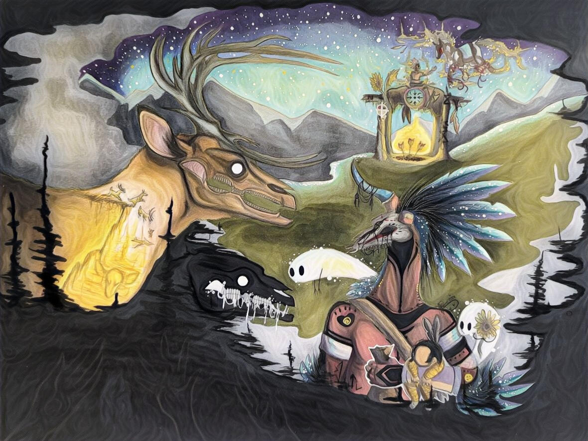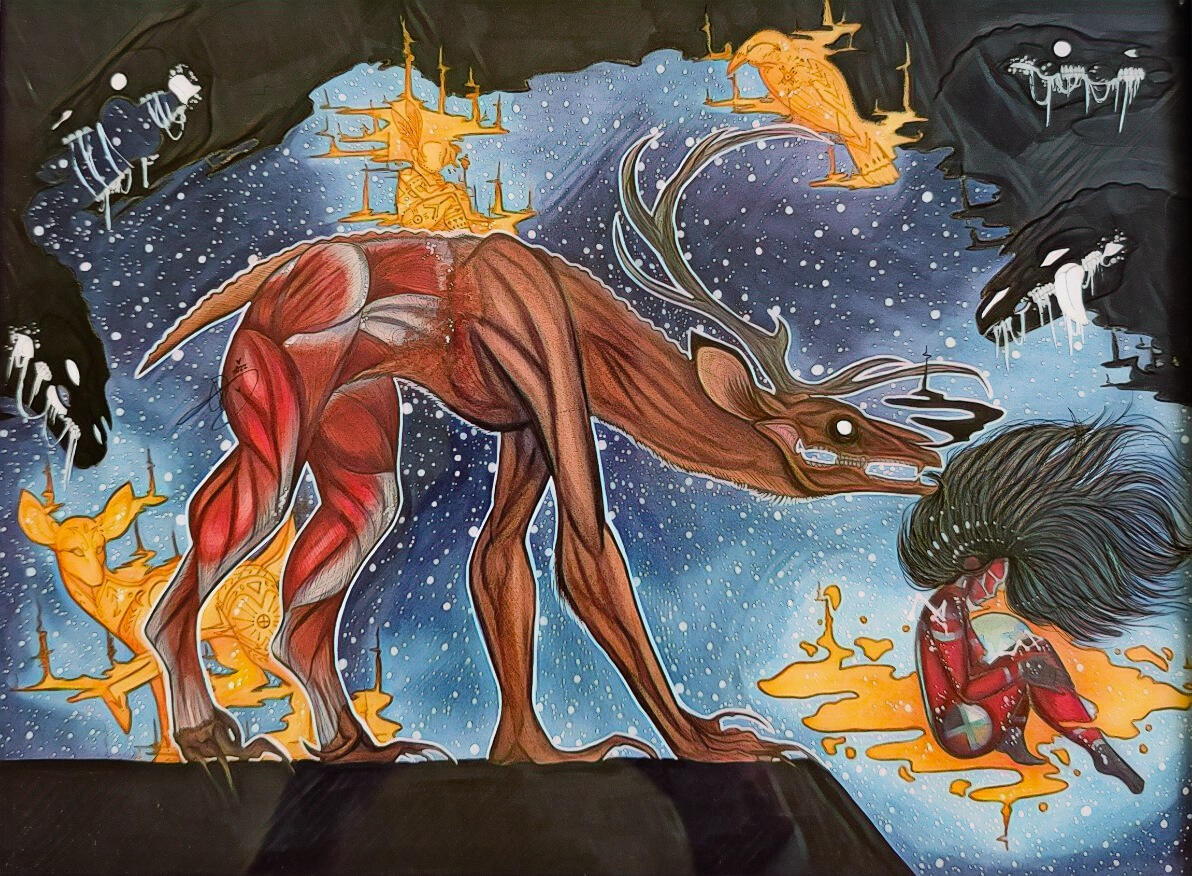 Or any of the beings I draw for that matter, every single one I've ever drawn was seen in dreams and Nightmares and I feel obligated as an artist to share what I'm shown no matter the way people see my work.It's an honor to participate alongside so many incredible indigenous artists over the years who have supported my work and what I do, And if I've learned anything over my walk on this earth it's that our indifferences and similarities are what create us and destroy us.