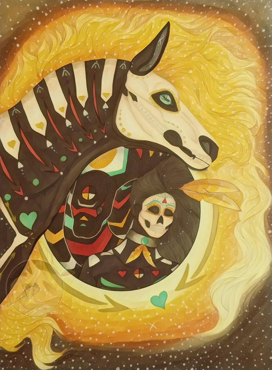 Heya! my name is Devaney Rain Royalty and I am a 19 year old self taught freelance artist! born and raised in Sacramento California. I am Ponca/Cree/Tsalagi (Cherokee) The Deer Clan. I was raised the Beauty Way and follow the Red Road as well as the Teachings of the Medicine Wheel. My Piece here is "Nocturnal", Sacramento has always been my hometown and my entire life really, I couldn't imagine myself in a different place.