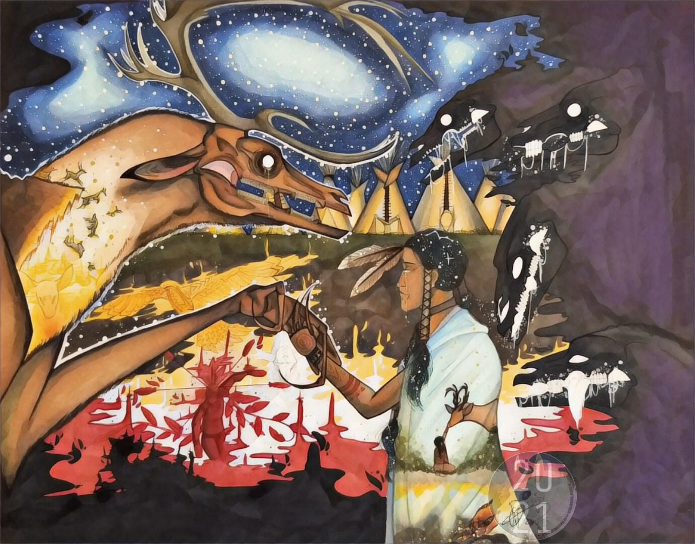 Sacred Fires is my representation on how we treat ourselves, each other, all Living Creatures and Mother Earth.