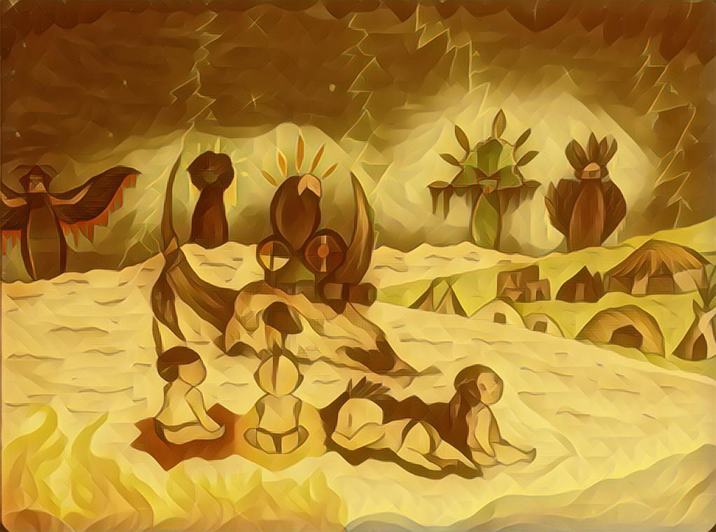 And just like that, the spread of the spirits had reached them and the natural disaster of the world began to eat his body like a wave as his shielded the people the best of his ability and reached to the creator as a last stance.Since then, thousands of years had past and generations of that village have lived upon the Great Smoke Keeper and they refer to this story as the last prayer.